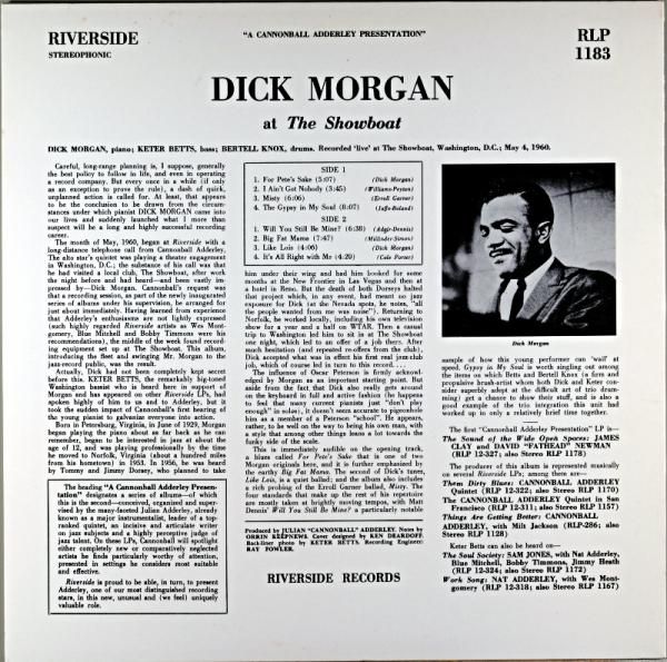 デック・モーガンは1929年バージニア州ペテルスブルグ生まれ。12歳時にジャズに興味を持ち独学でピアノをマスターし53年地元でプロとして活動を開始、56年後期のトミー・ドーシー楽団にピアニストとして加入、以後はワシントンDCの名門クラブ「ザ・ショーボート」にレギュラーで出演していた。そこに巡業中のキャノンボール・アダレイに見いだされ、ホームグラウンドでのライブアルバムが実現。60年5月録音のデック・モーガン初リーダーアルバムである。ベースに地元のキーター・ベッツ、ドラムスはバーテル・ノックス、恐らくレギュラー・メンバーではないかと推察される、ファンキーでソウルフルなピアノをライブでとらえた好アルバムである。