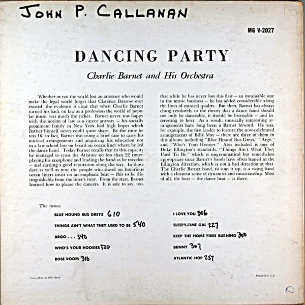 DANCING PARTY CHARLIE BARNET AND HIS ORCHESTRA |