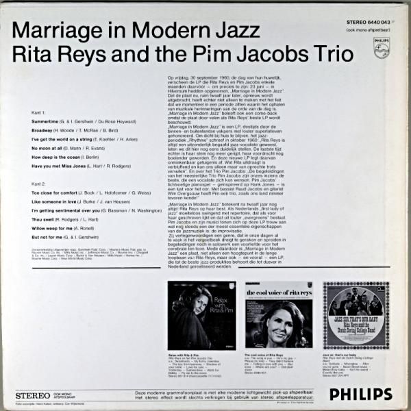 MARRIAGE IN MODERN JAZZ RITA REYS AND THE PIM JACKOBS TRIO |