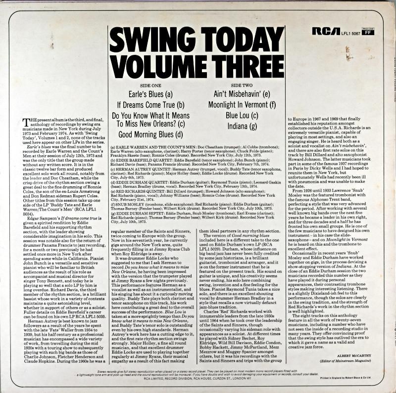 SWING TODAY VOLUME THREE EDDI DURHAM QUINTET |