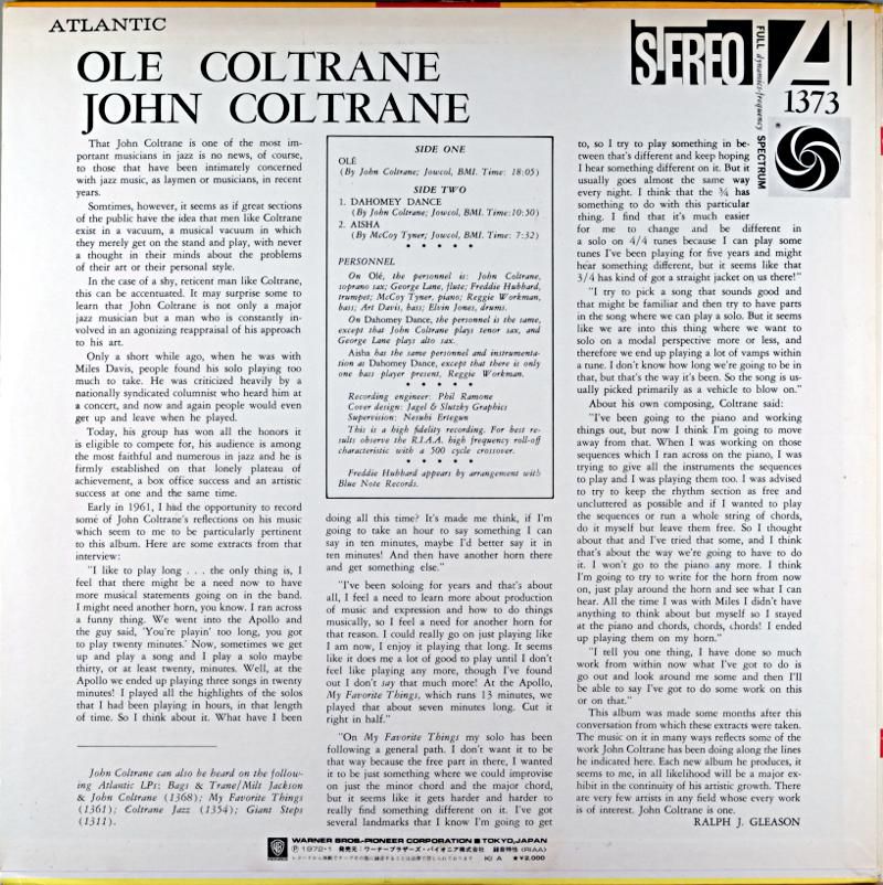 「オレ」はアトランテック・レーベルでの最終作。コルトレーン以下集ったメンバーは、エリック・ドルフィー、フレディ・ハバード、アート・デイビスがカルテットに加わっている。ベース奏者二人を擁したスパニッシュ・モードに依る斬新な演奏展開が新たなコルトレーン・サウンドを生み出している。