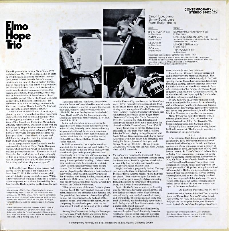 50ǯÂåÁ°È¾¥¤¡¼¥¹¥ÈÇɤΥץì¥ä¡¼¤È³èư¡¢¥Ö¥ë¡¼¥Î¡¼¥È¤ØÆóËç¤Î10±¥¤ò»Ä¤·50ǯ¸åȾ¥í¥¹¤Ø°Ü¤ê¡¢Ëܺî"ELMO HOPE"¤ò¥¸¥ß¡¼¡¦¥Ü¥ó¥É¡Á¥Õ¥é¥ó¥¯¡¦¥Ð¥È¥é¡¼¤Î¥È¥ê¥ª¤ÇHIFI JAZZ¡¡LABEL¤Ë»Ä¤·¤¿¤Î¤À¤Ã¤¿¡£¸å¤Ë¥³¥ó¥Æ¥ó¥Ý¥é¥ê¡¼¡¦¥ì¡¼¥Ù¥ë¤è¤êºÆÈ¯¤µ¤ì¤¿¤Î¤¬Ëܺî¤Ç¤¢¤ë¡£Á´8Æâ"LIKE SOMEOME IN LOVE"¾7¶Ê¤Ï¥Û¡¼¥×¤Î¥ª¥ê¥¸¥Ê¥ë¤Ë°Í¤Ã¤Æ¤¤¤ë¡£¥Ñ¥¦¥¨¥ëÇɤȤϸÀ¤¨¸ÄÀˤ«¤Ê¥¨¥ë¥â¡¦¥Û¡¼¥×¤ÎÂåɽºî¡£