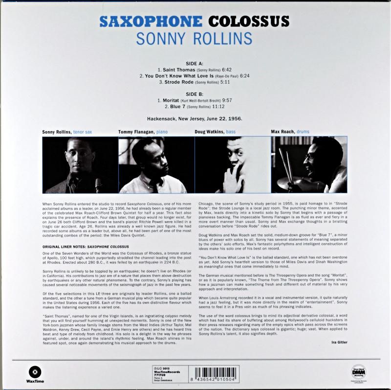 このアルバムを聴くたびに思うことがある。ジャズ・レコードが何万枚あるか知らないが、演奏と録音が完璧に一致した稀有なアルバムだという事である。ロリンズ〜フラナガン〜ワトキンス〜ローチ各人による際立ったインプロビゼーション、特にA面 ST. THOMAS,YOU DON'T KNOW WHAT LOVE IS,STRODE RODE におけるカルテットのコンビネーションと燃焼,スタジオ内の緊迫感が迫ってくる奇跡に近いパフォーマンスを示している。