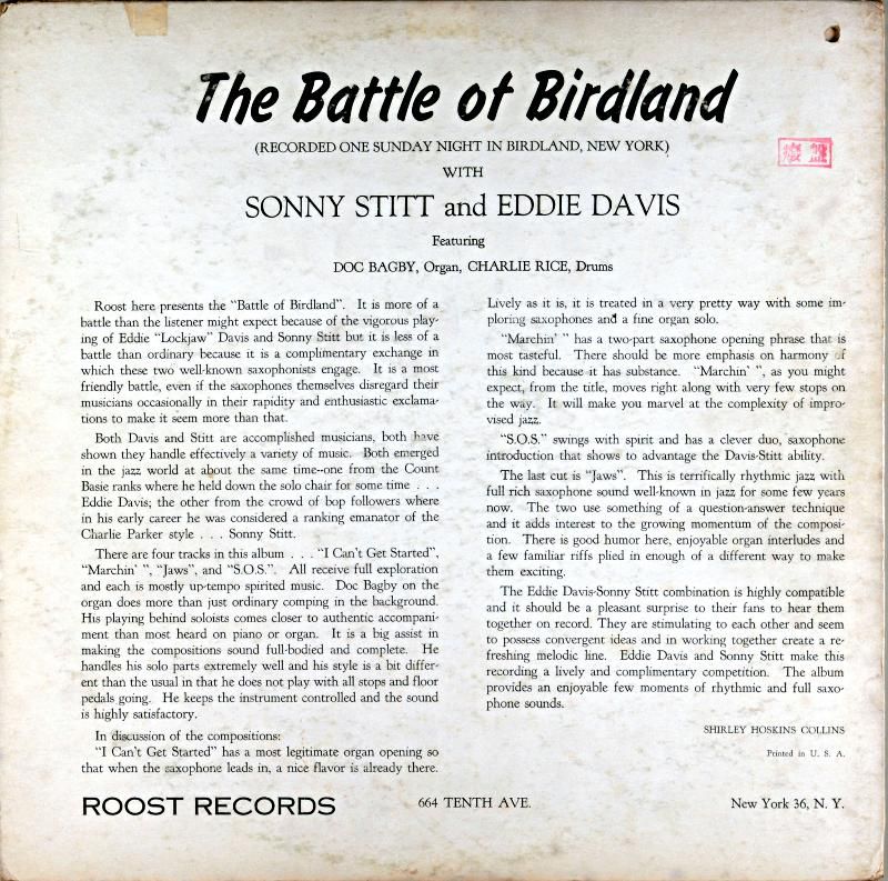 SONNY STITT - EDDIE DAVIS THE BATTLE OF BIRDLAND |