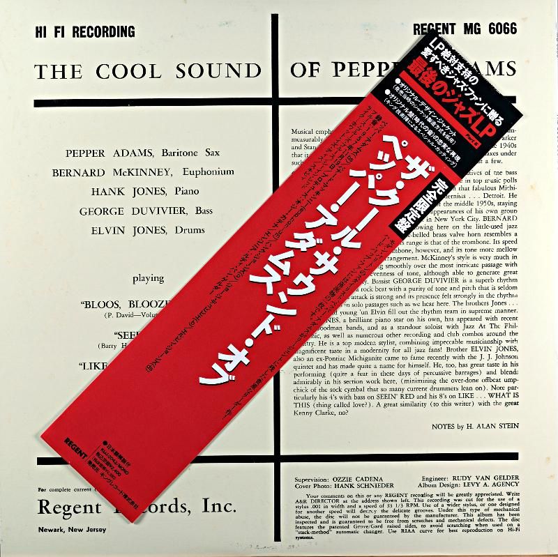 ペッパー・アダムスがバリトン・サックスを吹きまくるアルバムは"クリティクス・チョイス"のパシフィック盤〜5スポットでのライブアルバムはリバーサイド盤〜プレスティジ盤"エンカウンター"などが思い起こされるが、今まで取り上げる機会を逸していたリージェント盤の本作も、ペッパー・アダムスの本領を発揮した好アルバム。ハンク・ジョーンズ〜ジョージ・デビビエ〜エルビン・ジョーンズによるリズム・セクションがセッションを盛り上げている。