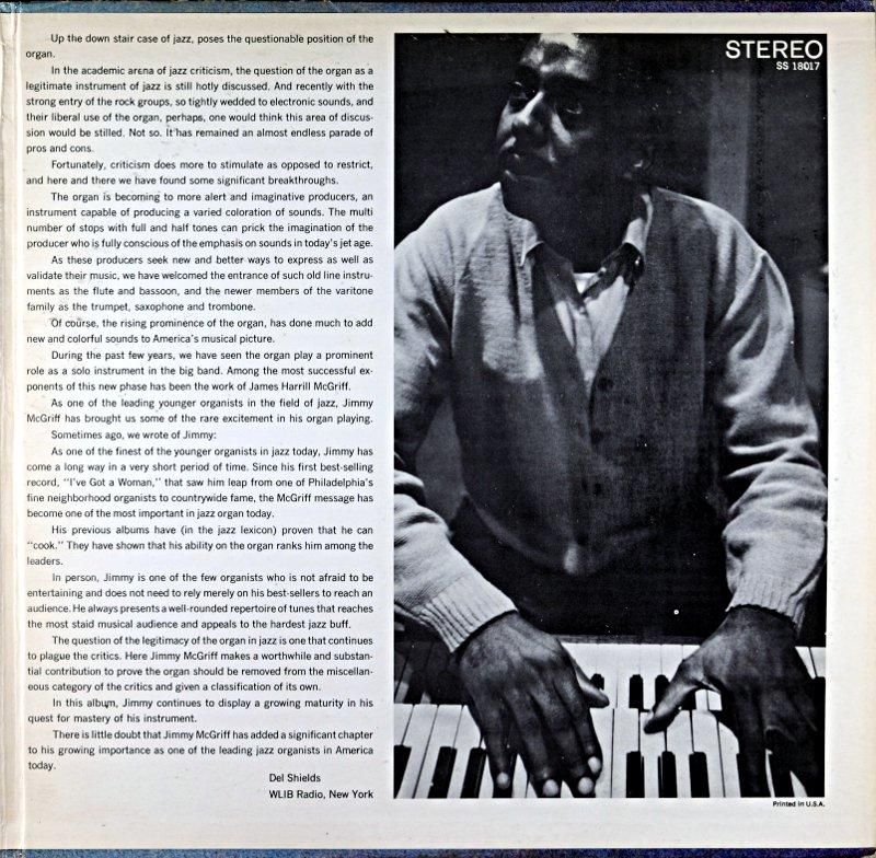 音楽一家に育ったジミー・マグリフは最初はベースを弾いていたが、ジミー・スミスを徹底的に研究しオルガンに転向。本作ではジョー・ニューマン〜ジェローム・リチャードソン〜リチャード・デイビス〜メル・ルイス〜バリー・ガルブレイスのメンバーに作編曲にマニー・アルバムを配したスインギーな充実作。