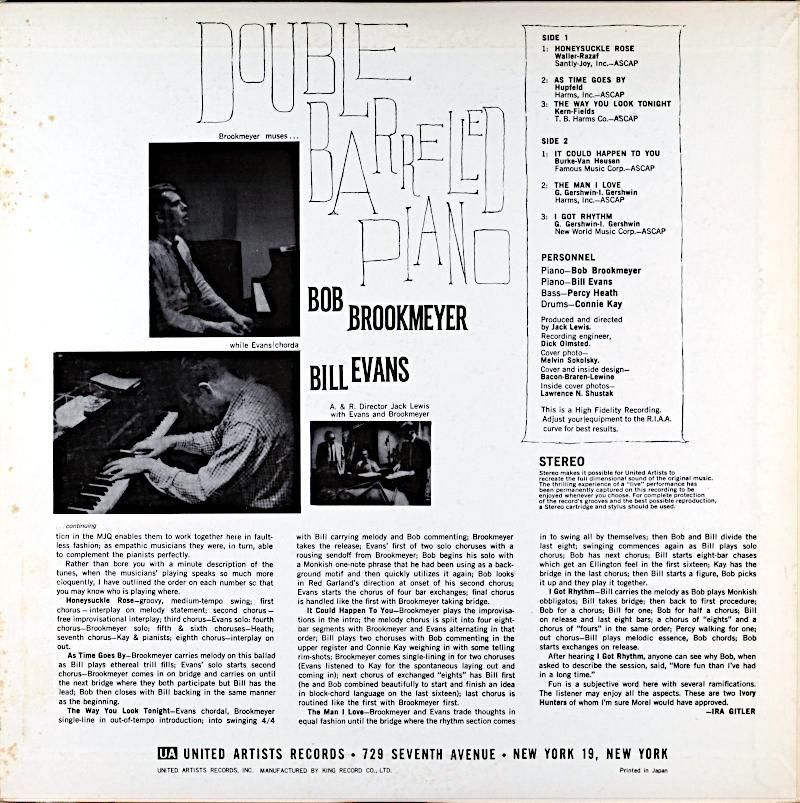 ¥Ü¥Ö¡¦¥Ö¥ë¥Ã¥¯¥Þ¥¤¥ä¡¼¤Ï¸µ¡¹¥Ô¥¢¥Ë¥¹¥È¤È¤·¤Æ¥¸¥ã¥º³¦¤Ë¥Ç¥Ó¥å¡¼¤·¤¿¤Î¤À¤Ã¤¿¡£¹¥¤¤Ê¥Ô¥¢¥Ë¥¹¥È¤È¤·¤Æ¥¨¥ê¥ó¥È¥ó¡Á¥Ù¥¤¥·¡¼¡Á¥Æ¥¤¥¿¥à¡Á¥¸¥§¥ê¡¼¡¦¥í¡¼¥ë¡¦¥â¡¼¥È¥ó¤ò¤¢¤²¥â¥À¥ó´ü¤Ç¤ÏÍ£°ì¥Ó¥ë¡¦¥¨¥Ð¥ó¥¹¤Î̾¤ò¤¢¤²¤Æ¤¤¤ë¡£¥Á¥ã¥ó¥¹¤¬Ë¬¤ì¤¿¤Î¤Ï1959ǯ¥æ¥Ê¥¤¥È¡¦¥ì¡¼¥Ù¥ë¤Ç¥¨¥Ð¥ó¥¹¤È¤Î¶¦±é¤¬¼Â¸½¡¢¥Ñ¡¼¥·¡¼¡¦¥Ò¡¼¥¹¡Á¥³¥Ë¡¼¡¦¥±¥¤¤Î¥Ð¥Ã¥¯¤òÆÀ¤ÆHONEYSUCKLE ROSE~AS TIME GOES BY¡ÁTHE WAY YOU LOOK TONIGHT¡ÁIT COULD HAPPEN TO YOU¡ÁTHE MAN I LOVE¡ÁI GOT RHYTHM¤ÎÁ´6¶Ê¡£¥»¥ó¥·¥Æ¥£¥Ö¤Ê¥Ô¥¢¥Î¡¦¥Ç¥å¥ª¤Ë°Í¤ë°Û¿§ºî¤Ç¤¢¤ë¡£