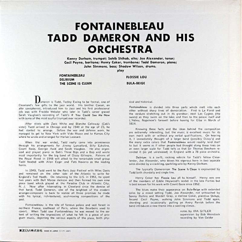 タッド・ダメロンはピアニストよりも作、編曲者として、あるいはピアニスト〜作曲家〜編曲家の三つのものを総合的に兼ね備えたユニークな存在であった。レナード・フェザー氏によれば、彼は“編曲という面からバップに取り組んだ最も最初の一人だ”ということになる。ダメロンのオリジナルは、ホット・ハウス〜グッドベイト〜アワ・デライト〜レディ・バード〜ステイ・オン・イットと言った名曲を残している。本作では、ブラウン〜ローチの吹込みで著名な“ザ・シーン・イズ・クリーン”以下全5曲の秀逸な内容となっている。