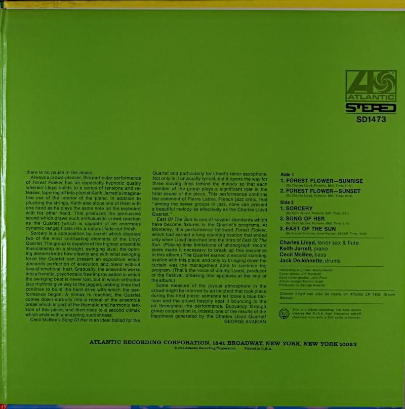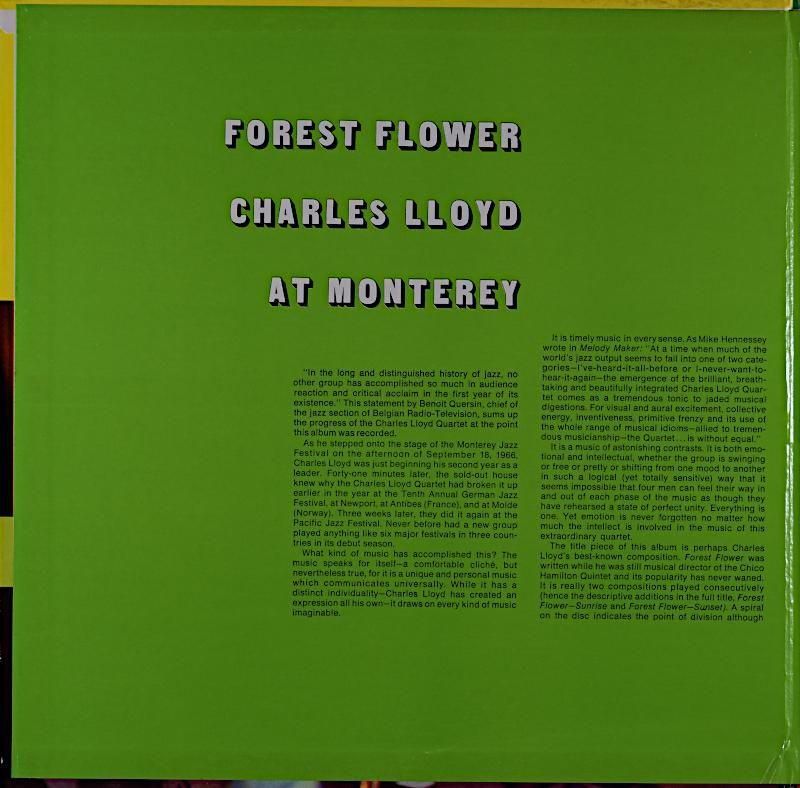 近年のチャールス・ロイドの復活は快挙だった。特にビリー・ヒギンズとの壮絶なデュオは最も感銘を受けたアルバムだった。本作はロイドが最初に 編成したカルテット、モントルーでのライブ・アクトを収めたもの。当たり曲「フォレスト・フラワー」を収録した初期の代表作。キース・ジャレット、セシル・マクビージャック・ディジョネット、生きの良い若手による奔放なリズムセクション、コルトレーン・ライクなロイドのプレイが強く印象に残る。