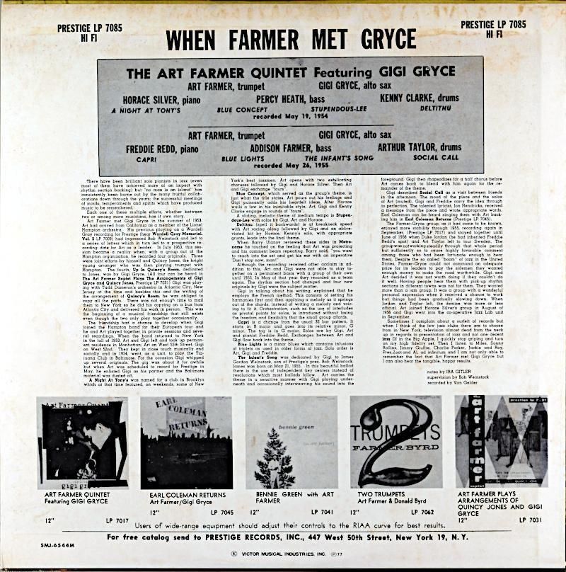 アート・ファマーは52年のライオネル・ハンプトン楽団の欧州ツアーに参加、そこにはクリフォード・ブラウンをはじめ、ジジ・グライスも参加それが出会いとなって54年にジャズ・ラブを結成,本作のレコーディングとなった。セッションは二つに分かれ54年のセットはリズムセクションがシルバー〜ヒース〜クラークの最良のメンバーによるものとなっており、翌55年はレッド〜アディソン・ファーマー〜アート・テイラーとのセッション。ともにイースト・コースト・ジャズの代表作と言えるアルバムであり、以降もグライスはドナルド・バードを迎えてジャズ・ラブのコンセプトを発展させて行く事になる。