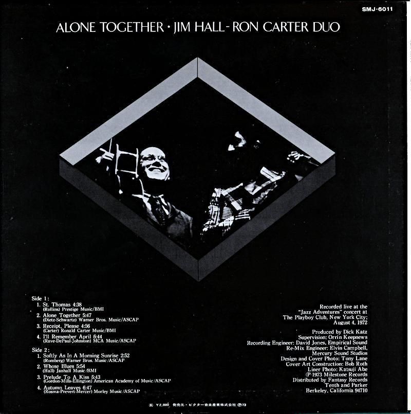 1972年8月4日ニューヨークの「プレイボーイ・クラブ」でのライブを収めたアルバム。ジム・ホールはチコ・ハミルトン〜ジミー・ジェフリー〜ロリンズ〜アート・ファマーなどと高い音楽性でグループを牽引、一方ロン・カーターはクラッシックからジャズへ転向し、マイルスのグループに抜擢されることからも伺えるように、伴に音楽に精通する両者の音楽的会話が、これほど濃密な形で記録された稀有なセッショだっった。続編がリリースされたのも首肯できる。