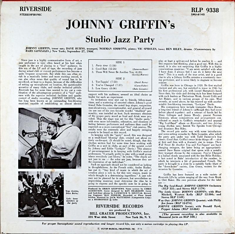 ¥¹¥¿¥¸¥ª¡¦¥é¥¤¥Ö¡¦¥¢¥ë¥Ð¥à¤È¤·¤ÆÃøÌ¾¤ÊËÜ¥¢¥ë¥Ð¥à¤Ï¡¢JOHNNY GRIFFIN¡ÁDAVE BURNS¡Á NORMAN SIMMONS¡ÁBEN RILEY¤Î¥¯¥¤¥ó¥Æ¥Ã¥È¤Ë°Í¤ë¥¹¥¿¥¸¥ª¡¦¥é¥¤¥ÖÈס£ËÁƬ¥Ð¥Ö¥¹¡¦¥´¥ó¥¶¥ì¥¹¤Î»Ê²ñ¤«¤é¥¹¥¿¡¼¥È¡¢¥¿¥Ã¥É¡¦¥À¥á¥í¥ó¤Î"GOOD BAIT"¡Á"THERE WILL NEVER BE ANOTHER YOU"¡Á"TOE TAPPIN'"¡Á"YOU'VE CHANGED"¡Á"LOW GRAVY"¤ÎÁ´6¶Ê¡¢²÷±é¤Ë¼¡¤°²÷±é¤¬Å¸³«¤µ¤ì¤Æ¤¤¤ë¹¥¥¢¥ë¥Ð¥à¡£