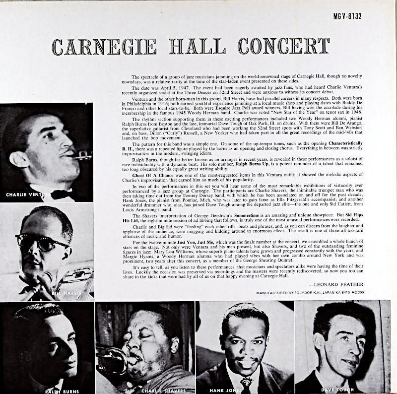 CHARLIE VENTURA CHARVEGIE HALL CONCERT |