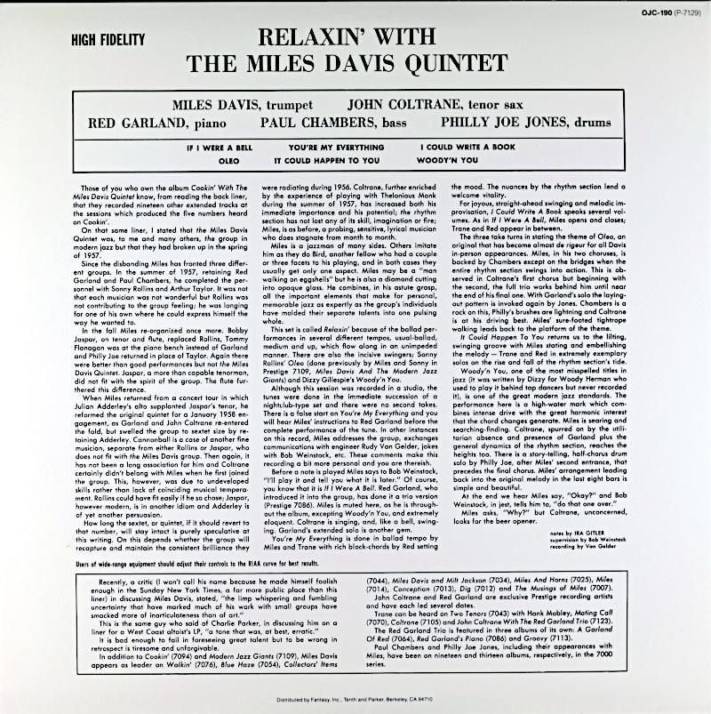 ¥Þ¥¤¥ë¥¹¤Ë¥³¥ë¥È¥ì¡¼¥ó¡Á¥¬¡¼¥é¥ó¥É¡Á¥Á¥§¥ó¥Ð¡¼¥¹¡Á¥Õ¥£¥ê¡¼¡¦¥¸¥ç¡¼¡¦¥¸¥ç¡¼¥ó¥º¤Î¥ª¡¼¥ë¡¦¥¢¥á¥ê¥«¥ó¡¦¥ê¥º¥à¥»¥¯¥·¥ç¥ó¤Ï¥³¥í¥ó¥Ó¥¢¤Ë°ìËç¡¢¥×¥ì¥¹¥Æ¥¤¥¸¤Ë5Ëç¤Î¥¢¥ë¥Ð¥à¤ò»Ä¤·¤¿¡£MILES¡ÁRELAXIN'¡ÁCOOKIN¡ÁSTEAMIN'¡ÁWORKIN'¤É¤ì¤ò¼è¤Ã¤Æ¤ß¤Æ¤â¥Ï¡¼¥É¥Ð¥Ã¥×¤Î̾±é¤À¤¬¡¢¥¬¡¼¥é¥ó¥É¡Á¥³¥ë¥È¥ì¡¼¥ó¤Î½ÐÍè±É¤¨¤Ë¤è¤Ã¤Æ"RELAXIN'"¤¬ºÇ¤ḁ̂뤵¤ì¤ë¥¢¥ë¥Ð¥à¤Ë°ã¤¤¤Ê¤¤¡£¥¸¥ç¥Ë¡¼¡¦¥³¡¼¥ë¥º / THE WARM SOUND THE JOHNNY COLES QUARTET¥È¥é¥ó¥Ú¥Ã¥È¤Î¥ï¥ó¥Û¡¼¥ó¡¦¥¢¥ë¥Ð¥à¤Ï¾¯¤Ê¤¤¤¬°¦Ãå¤Îʨ¤¯¤â¤Î¤¬Â¿¤¤¡£ ¤¹¤°»×¤¤É⤫¤Ö¥¯¥ê¥Õ¥©¡¼¥É¡¦¥Ö¥é¥¦¥ó¤Î¥Ñ¥ê¡¦¥»¥Ã¥·¥ç¥ó¡¢¥Ö¥ë¡¼¡¦¥ß¥Ã¥Á¥§¥ë¤ä¥±¥Ë¡¼¡¦¥É¡¼¥Ï¥à¤Ë¤â½¨ºî¤¬¤¢¤Ã¤¿¡£¥¸¥ç¥Ë¡¼¡¦¥³¡¼¥ë¥¹¤ÎËܺî¤Ï¥ê¥º¥à¥»¥¯¥·¥ç¥ó¤Ë¹¥Ä´¤Ê¥±¥Ë¡¼¡¦¥É¥ê¥å¡¼¡¢·ø¼Â¤Ê¥ê¥º¥à¥Þ¥ó¤Î¥Ú¥Ã¥¯¡¦¥â¥ê¥½¥ó¡¢¥·¥ã¡¼¥×¤Ê¥Á¥ã¡¼¥ê¡¼¡¦¥Ñ¡¼¥·¥Ã¥×¤Î¹¥±é¤Ë»Ù¤¨¤é¤ì¤Æ¥Þ¥¤¥ë¥É¤ÊÌ£¤ï¤¤¿¼¤¤ºîÉʤ˻ž夬¤Ã¤Æ¤¤¤ë¡£